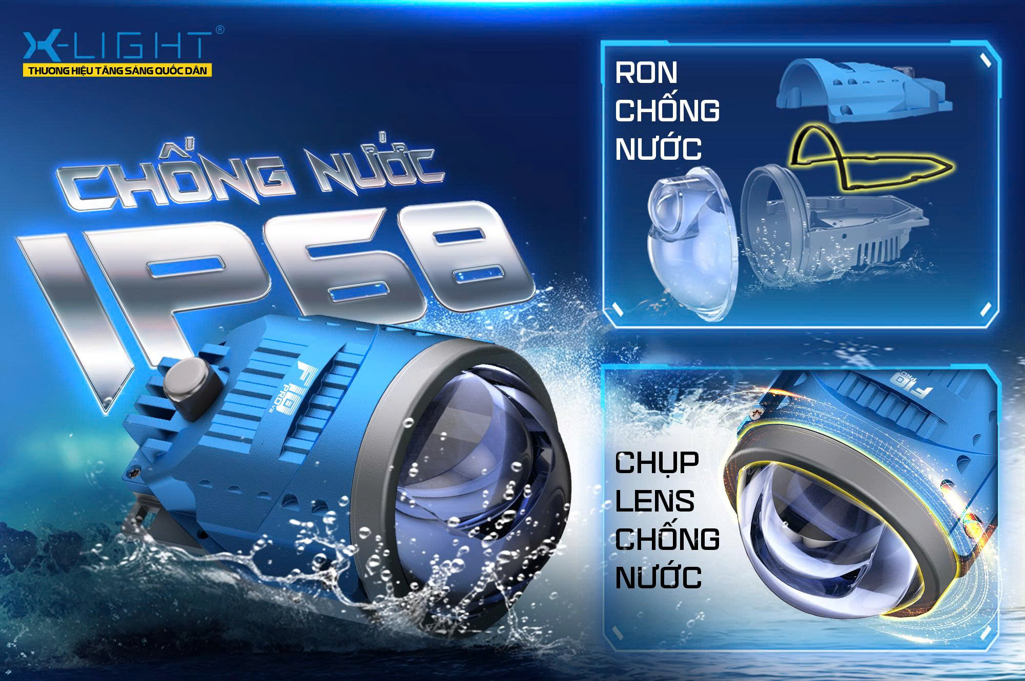 Đèn bi gầm X-Light F10 Pro V2 có khả năng chiếu sáng mạnh, rõ và rộng, giúp người lái có thể làm chủ tầm nhìn trong bất kỳ điều kiện di chuyển nào. Từ ánh sáng Cos bám đường ấn tượng đến ánh sáng Pha gom xa, sáng mạnh, chắc chắn trở thành một trong những lựa chọn hàng đầu cho phân khúc đèn gầm tăng sáng.