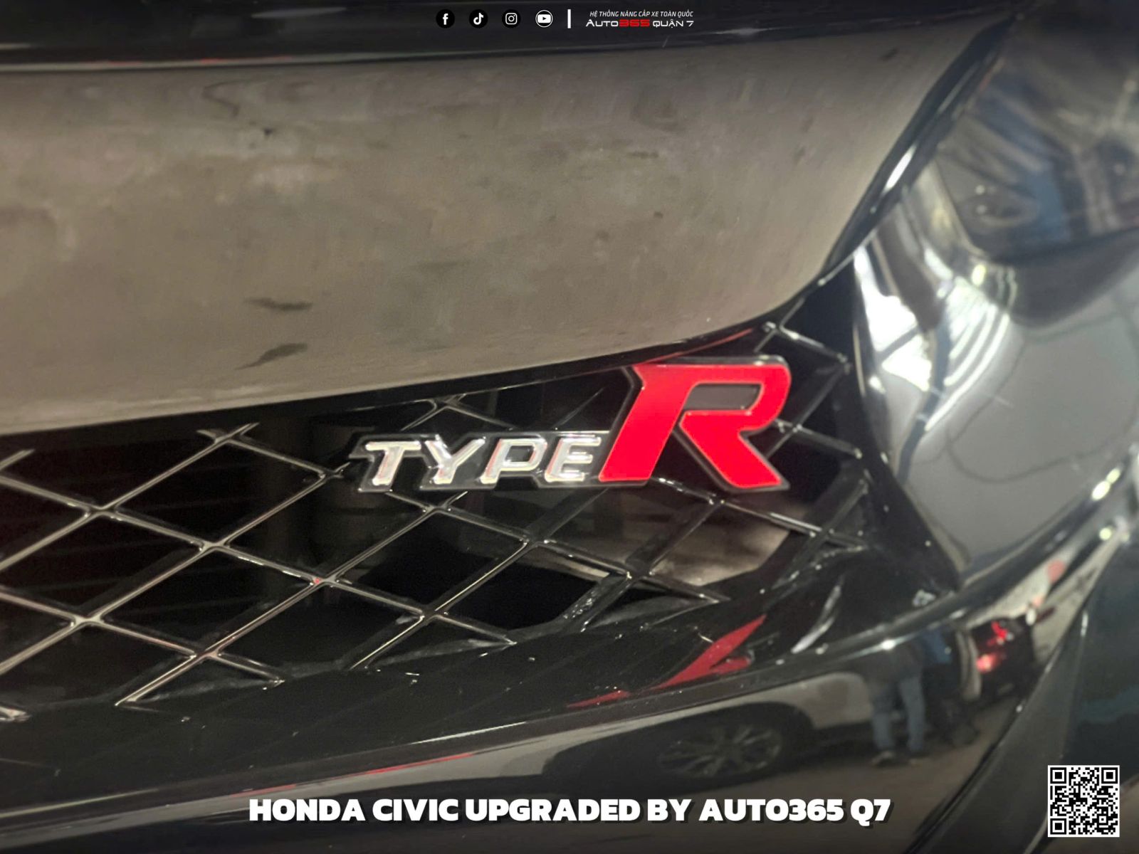 Lưới tản nhiệt Type R: logo đỏ nổi bật, nhận diện phong cách thể thao đặc trưng của Honda.