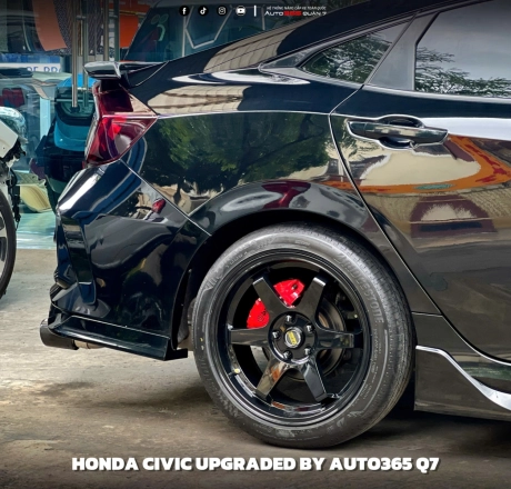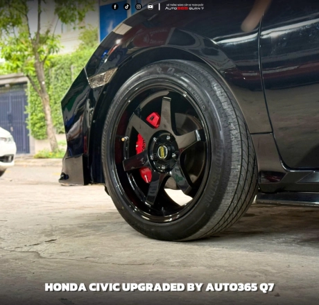 Nhờ bộ bodykit này, Honda Civic Gen 10 không chỉ nổi bật trên đường phố mà còn mang đậm dấu ấn cá tính riêng của chủ xe. Ngoài ra chủ xe còn trang bị thêm bộ mâm 6 cánh đen càng làm nổi bật hơn chiếc xe