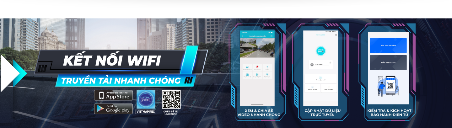 | Kết nối WIFI | Có ( Ứng dụng VIETMAP REC ) |
