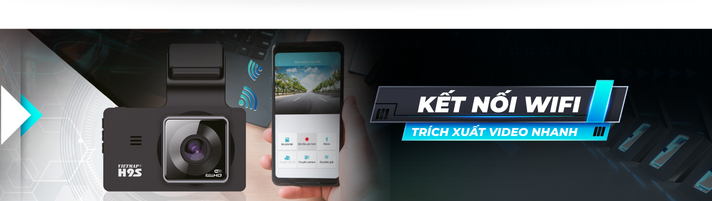 VIETMAP H9S trang bị công nghệ truyền dữ liệu thông qua kết nối WIFI không dây, giúp việc xem lại, lưu trữ chia sẻ video lên mạng xã hội dễ dàng trên các thiết bị hệ điều hành Android và IOS thông qua ứng dụng VIETMAP REC.