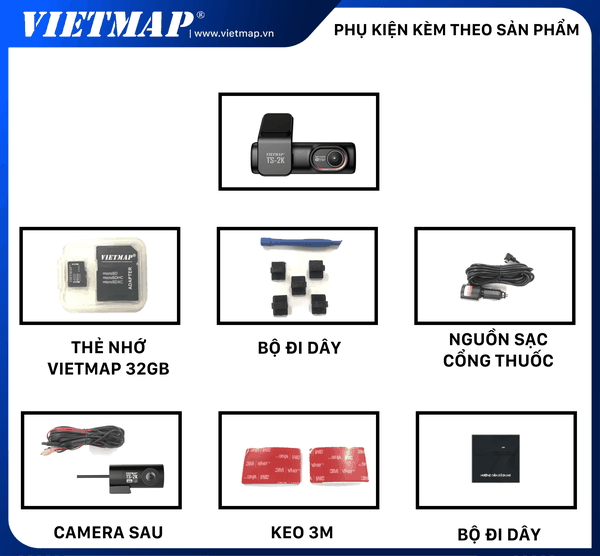 Camera hành trình trước sau VIETMAP TS-2K với thiết kế mới hiện đại vừa ghi hình, vừa đảm bảo tính thanh lịch, sang trọng của nội thất xe. Camera hành trình VIETMAP TS-2K với camera trước độ phân giải SUPER HD 2K kết hợp cùng camera sau Full HD 1080p ghi lại chi tiết toàn bộ hành trình trước & sau xe cùng với tốc độ.